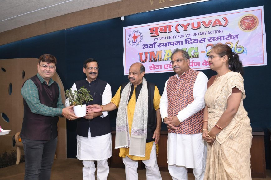 UNITED NEWS OF ASIA.अमृतेश्वर सिंह, रायपुर। वृंदावन हॉल, सिविल लाइन रायपुर में युवा फाउंडेशन के 25वें स्थापना दिवस समारोह “उमंग 2026” का भव्य और प्रेरणादायी आयोजन किया गया। कार्यक्रम में युवाओं की ऊर्जा, सकारात्मक सोच और समाज निर्माण के प्रति समर्पण स्पष्ट रूप से देखने को मिला। समारोह में बड़ी संख्या में युवाओं, सामाजिक कार्यकर्ताओं और गणमान्य नागरिकों की उपस्थिति ने आयोजन को यादगार बना दिया।